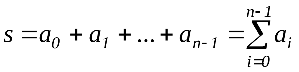 Пусть а[] – заданный массив из n элементов. Сумма всех его элементов в математической форме выглядит следующим образом: