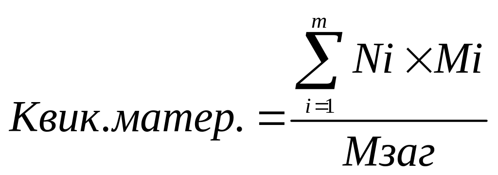 Коефіцієнт використання окремих видів матеріалів (Квик.матер) може визначатись не лише по певних видах продукції, а й по підприємству в цілому: