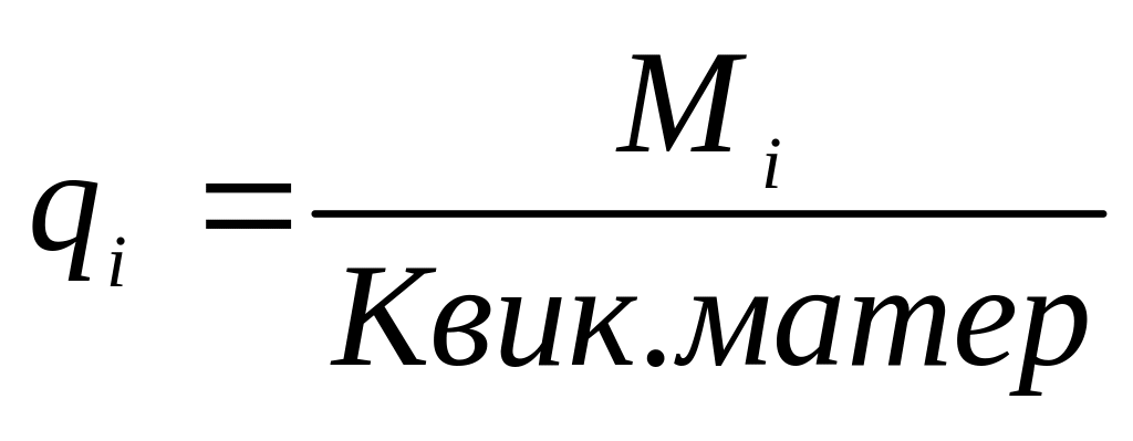 Маса (площа) заготовки знаходиться виходячи із коефіцієнта використання матеріалу (Квик.матер) і чистої ваги деталі (виробу) (Мі):