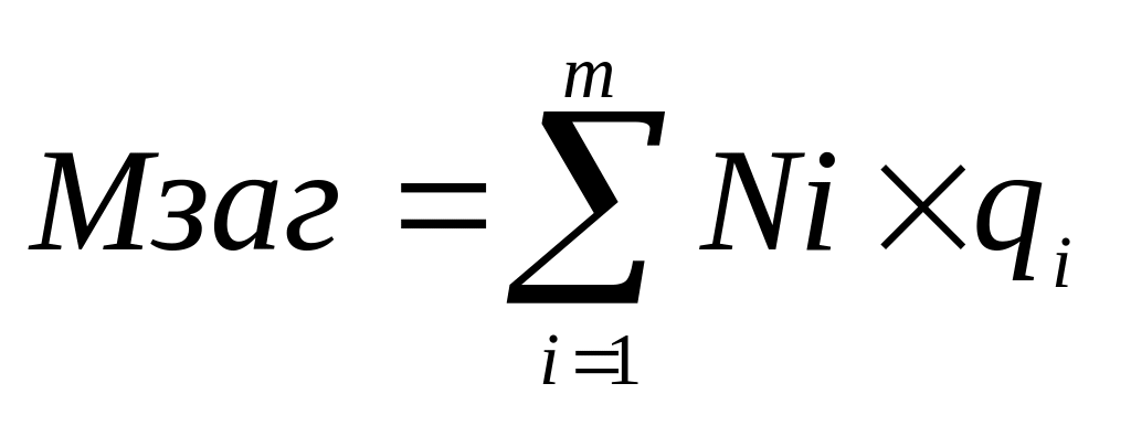 Мзаг - загальні витрати матеріалу на випуск продукції за певний період у фізичних одиницях.