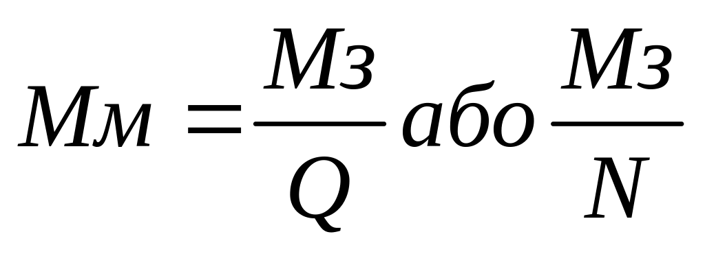 Загальна матеріаломісткість (Мм) відображає вартість всіх матеріальних затрат на одиницю виробу або на одну гривню виготовленої продукції, її можна обчислити: