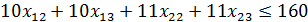 Двухиндексную нумерацию переменных необходимо перевести в одноиндексную. Для удобства ввода в ПК исходные данные из модели представляются в виде таблицы (табл. 2.6). В шапке таблицы, в 2-х строках приводятся двухиндексные и одноиндексные переменные. Число строк в таблице равно числу ограничений плюс строка для записи целевой функции. Число столбцов определяется количеством переменных плюс столбец для записи правых частей ограничений. В клетках таблицы записываются технологические коэффициенты.
