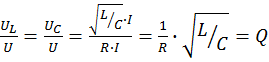 Коэффициент резонанса указывает, во сколько раз напряжение на индуктивности или на ёмкости больше, чем напряжение, приложенное к цепи. Очевидно, что , если