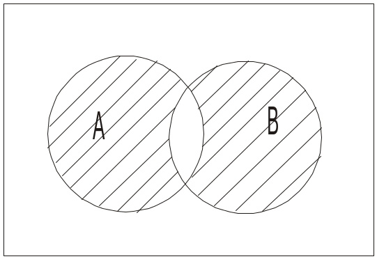 Для наочного зображення співвідношень між множинами будь-якого універсума U використовують круги Ейлера. Зазвичай універсум подають множиною точок прямокутника, а його підмножини зображають у вигляді кругів або інших простих областей усередині цього прямокутника. Об’єднання зображується таким чином (рис. 1.2.1):