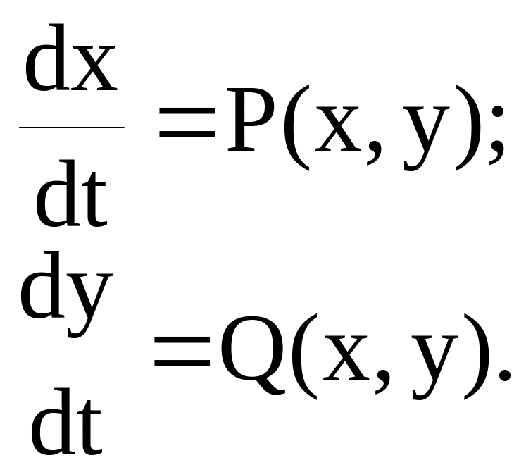 Системи типу (17) використовуються для опису еволюційних процесів. Точка фазового простору визначає стан системи. Прикладений до цієї точки вектор з координатами dx/dt, dy/dt задає швидкість зміни стану. Точка, де цей вектор перетворюється в нуль (dx/dt = dy/dt = 0), називається положеннями рівноваги або особливою точкою системи (16).