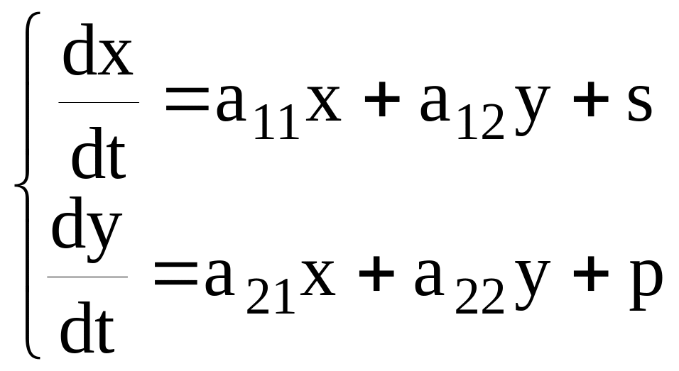 Обмежимося розглядом систем диференціальних рівнянь спеціального вигляду, так званих лінійних систем. У разі двох невідомих функцій x1(t), x2(t) лінійна система має вигляд