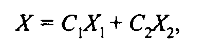 Хай 1 і 2 - корені характеристичного рівняння |А - E|=0. Припустимо спочатку, що 1 2. Якщо P1 - який-небудь власний вектор, відповідний 1, а Р2 - власний вектор, відповідний 2, то формули X1=P11, X2=P22 визначають два часткових розв’язків рівняння (18). Загальний ж розв’язок, як можна продемонструвати, має вигляд: