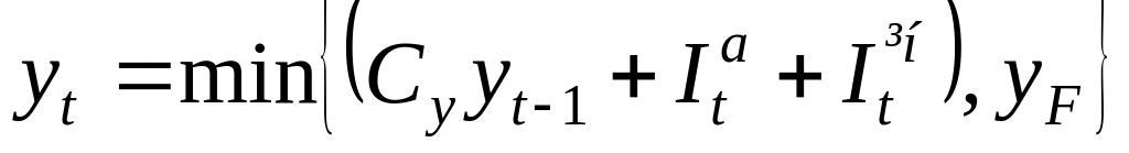 У реальній економіці Су < 1, а > 1, тобто їй відповідають області III і IV. При таких поєднаннях значень граничної схильності до споживання і акселератора рівновага нестійка, і при її порушенні в моделі yt дуже швидко приймає неправдоподібні значення. Насправді розмір національного доходу не може істотно перевищувати величину національного доходу повної зайнятості. Це обмежує амплітуду коливань об'єму національного доходу зверху. З іншого боку, обсяг індукованих інвестицій не може бути менше негативної величини амортизації і це обмежує амплітуду коливання величини національного доходу знизу. В результаті модель взаємодії мультиплікатора і акселератора приймає вигляд