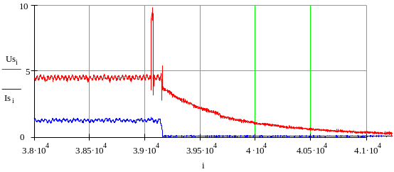 Рисунок 5 – Обвідні струмів і напруг статора гальмуванні АД