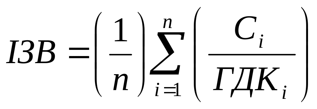 Аналогічно визначається екологічна небезпека забруднення водних об'єктів за індексом забруднення води (ІЗВ):