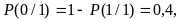 Пример 2. По каналу связи с помехами передается одна из двух команд управления управления в виде кодовых комбинаций 11111 и 00000, вероятности передачи этих команд равны соответственно 0,7 и 0,3. Вероятность правильного приема каждого из символов 0 и 1 равна 0,6. Символы искажаются помехами независимо друг от друга. На выходе канала имеем кодовую комбинацию 10110. Оценить, какая команда была передана.