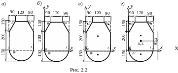 Выбираем и показываем на чертеже вспомогательную систему координат. После выполнения второго пункта чертёж принимает вид, показанный на рис. 2.2, б, где представлена вспомогательная система координат x0y.