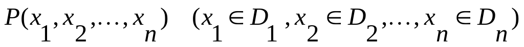 Переменную в предикате называют свободной ( ей можно придавать различные значения из М), в высказывании переменную называют связанной квантором всеобщности.