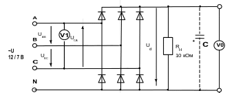 Объектом исследования является неуправляемый выпрямитель трехфазного тока (рис. 1).