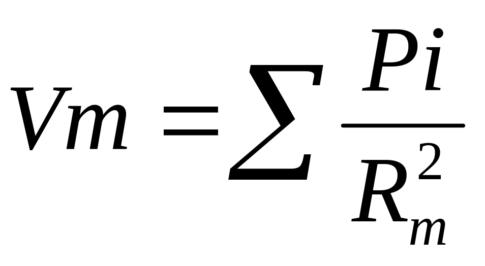 Для визначення взаємодії центрів тяжіння використовують формулу: