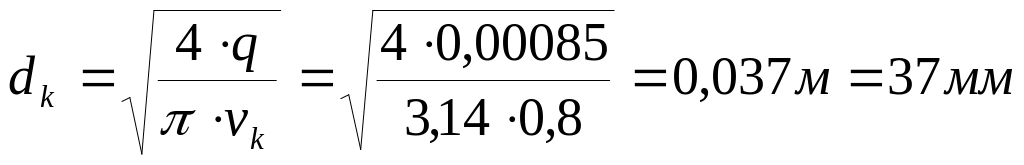 Примем скорость движения жидкости в коллекторе Vк=0,8 м/с, тогда диаметр равен: