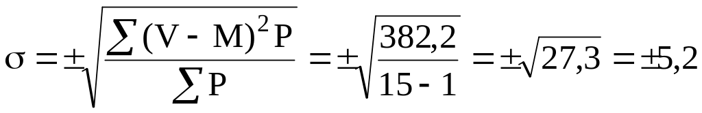 Затем по формуле вычисляем среднюю ошибку средней арифметической