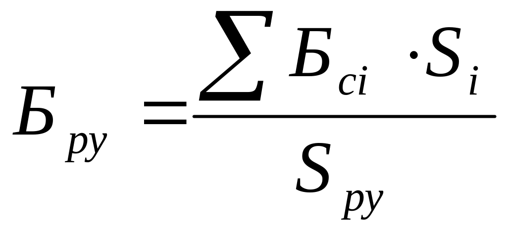 где Бру – средневзвешенное значение совокупного почвенного балла вида сельскохозяйственных угодий в границах рабочего участка; Si – площадь почвенных разновидностей, входящих в состав того или иного вида угодий в границах рабочего участка, га; Sру – площадь данного вида угодий в границах рабочего участка, га.