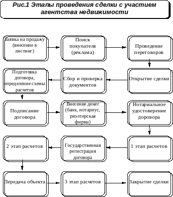 Для российской ситуации особую значимость имеют издержки, связанные с осуществлением расчетов при совершении сделок с недвижимостью. Эта проблема настолько существенна, что оказание услуг по обеспечению безопасности расчетов является сегодня одной из важных задач риэлтеров. Их задача состоит в том, чтобы разработать, внедрить и поддерживать такой способ расчетов, который максимально обеспечивает соблюдение интересов участников сделки и сохранность средств, В частности, речь идет и о поэтапной выдаче средств продавцу по мере проведения сделки (см. рис.1) и о привлечении специализированных организаций – банков, эскро-фирм и т.д.