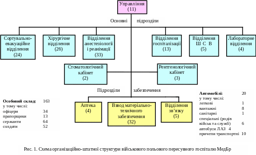 Согласно существующей системе лечебно-эвакуационного обеспечения Вооруженных Сил Украины в военное время ВППГ есть основным лечебным закладом, которое разворачивает этап медицинской эвакуации для предоставления квалифицированной медпомощи пораженным и больным. Своевременное предоставление указанной помощи пострадавшим в первые часы после поражения или заболевание и эвакуация в лечебные заклады госпитальной базы по назначению имеет решающее значение для сохранности их жизни и получение наилучших результатов в следующем лечении. Это одно из важных условий организации специализированной медпомощи.