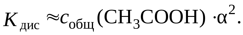 Когда электролит очень слабый, т. е. α → 0, Kдис ≈ собщ · α2, откуда
