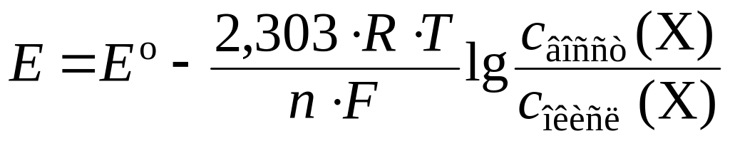 Если в уравнение Нернста подставить числовые значения R (8,314), F (96500) и принять температуру равной 298 K, то оно принимает вид: