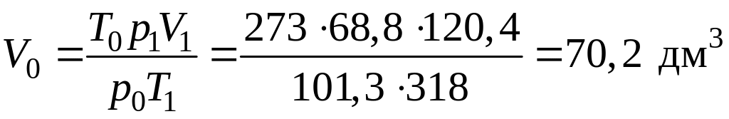 Из уравнения объединенного газового закона выразим V0 и рассчитаем его: