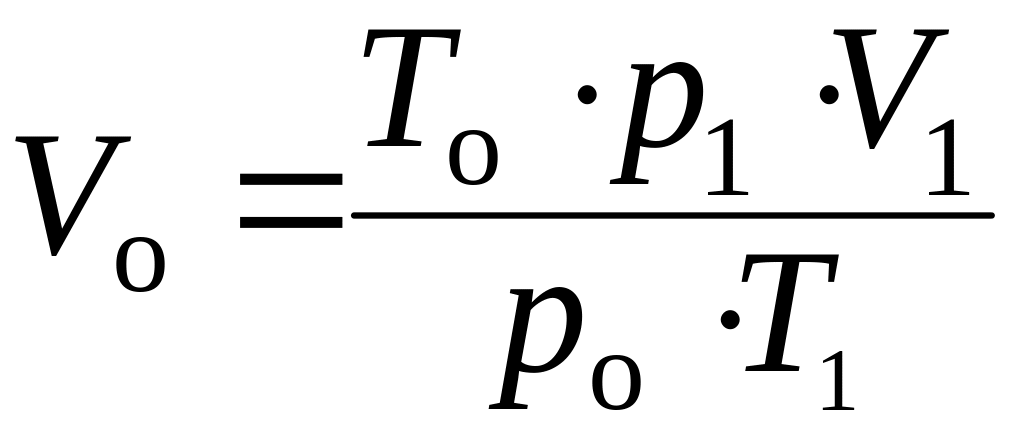 При решении задач данное уравнение часто используется для расчета объема газа Vo при нормальных условиях (ро,То), если известно значение объема V1 при других условиях (p1, T1):