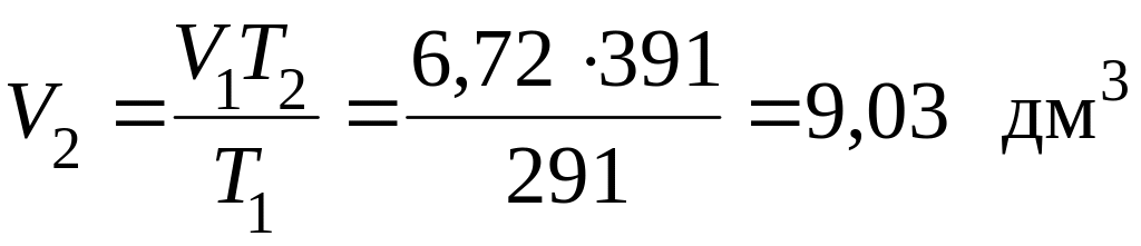 Пример 1.1.13. При температуре 18 оС объем газа равен 6,72 дм3. Вычислите объем данного газа при температуре 118 оС.