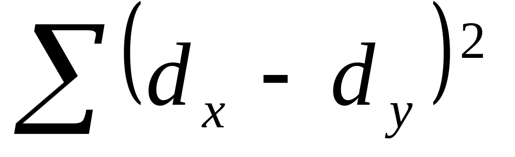 В формуле (6) dx и dy ранги статистических данных, т.е. места вариант в их ранжированной совокупности. Если в совокупности несколько одинаковых данных, то их ранги равны и определяются как среднее значение от мест, занимаемых этими вариантами. Например,