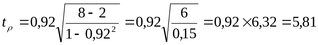 Определяем статистическую достоверность коэффициента корреляции использую критерий Стьюдента по формуле (8).