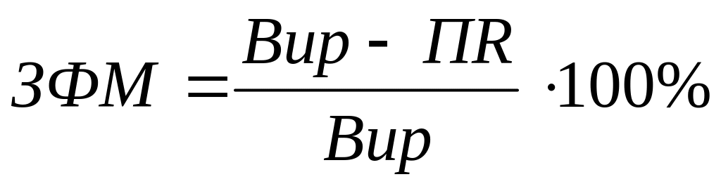 2. Запас фінансової міцності, який дозволяє з’ясувати на яку величину (в абсолютному і відносному виразі) можна зменшити виручку від реалізації продукції без шкоди для виробника: