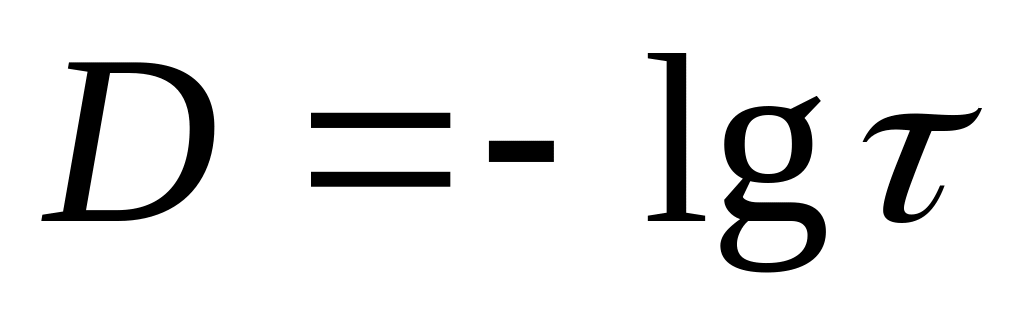 может изменяться от 0 до 1, или выражается в процентах. Если величина отнесена к толщине слоя в 1 см., то она называется коэффициентом пропускания. Отрицательный десятичный логарифм этого отношения называют оптической плотностью - D: