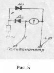 проходит через полупроводниковый элемент Д1 и рамку прибора, а в нерабочий полупериод – мимо рамки, через элемент Д2. Это необходимо для того, чтобы через элемент Д1 не проходило большое обратное напряжение, вызывающее его порчу (пробой). Полупроводниковый выпрямитель для измерения напряжений переменного тока включён постоянно. Но так как его сопротивление значительно больше сопротивления рамки, шунтирующее влияние его на чувствительность прибора при измерении напряжения постоянного тока очень мало.