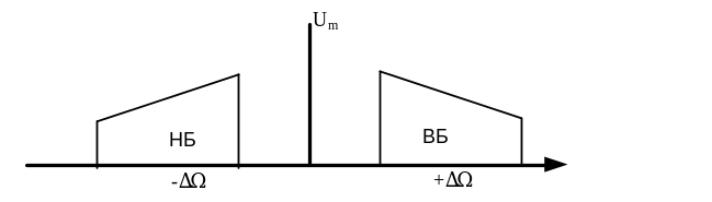 - спектр ВБ и НБ оказываются сдвинуты относительно исходного спектра речевого сигнала ΔΩ на величину несущей частоты;