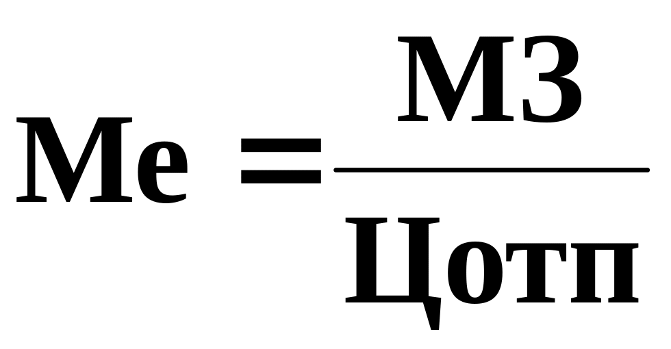 Материалоемкость Ме, руб/руб., – показывает долю материальных затрат в выручке продукции и рассчитывается по формуле