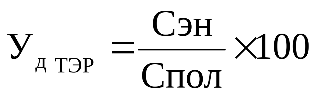 Удельный вес топливно-энергетических ресурсов в себестоимости УдТЭР %,-- показывает долю топливноэнергетических затрат в себестоимости продукции и рассчитывается по формуле