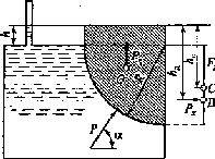 7. Как определить силу давления жидкости и ее составляющие на криволинейную стенку? Какие величины входят в расчетные формулы для определения этих сил?