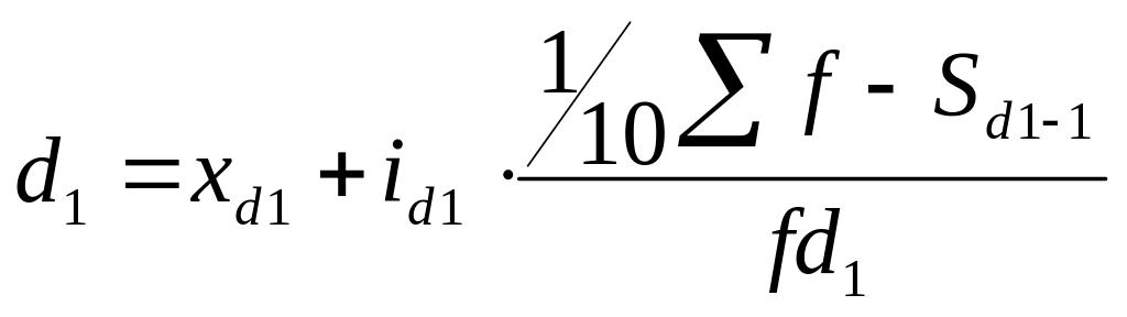 Децили – это варианты (значения признака), делящие ранжированный ряд на 10 равных частей. Первый дециль d1 делит совокупность в отношении 1 к10, второй d2 в соотношении 2 к 10 и т. д. Вычисляются они по той же схеме, что и медиана и квартили.