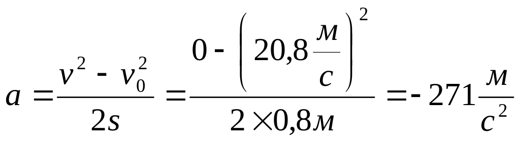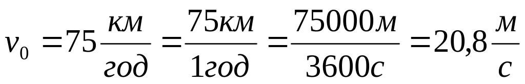 ЗАДАЧА-ЗРАЗОК. Водій, міцно і правильно пристебнутий ременем безпеки, їхав в автомобілі зі швидкістю v0= 75 км/год. Через несприятливі погодні умови він не впорався з керуванням — автомобіль врізався у дерево, внаслідок чого його передня частина деформувалася. При аварійному гальмуванні тіло водія перемістилося на відстань s= 0,8 метра (разом із кріслом водія) і зупинилося (v = 0). Яким було прискорення, набуте тілом водія при такому екстреному гальмуванні? Чи залишився водій живим?