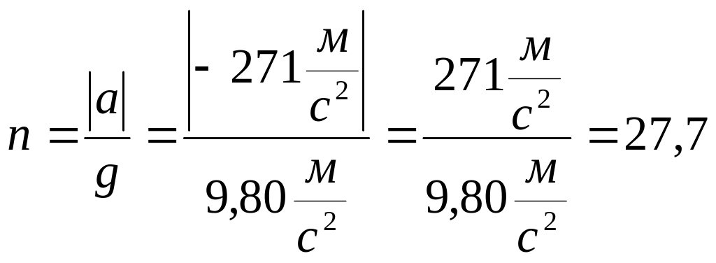 Оцінимо, у скільки разів отримане прискорення перевищує прискорення вільного падіння g= 9,80 м/с2: