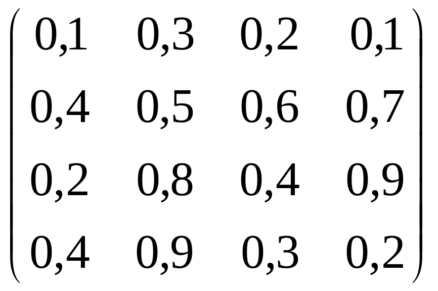 3 При опросе четырех потребителей установлена вероятность выбора каждого из четырех товаров различных фирм. Получена матрица вероятности покупки предложенных марок: