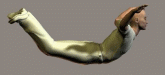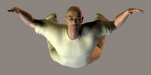 Выпрыгнуть вперед и вверх по углом, приблизительно 45°. При этом тело прогнуть в пояснице, ноги слегка раздвинуть, носки вытянуть вниз, колени чуть-чуть согнуть. Прямые руки вытянуть вниз под углом 45° от тела. После отделения нужно сохранять прогиб и смотреть выше уровня горизонта;1