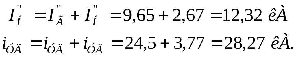 6. Сверхпереходный и ударный ток в точке КЗ: