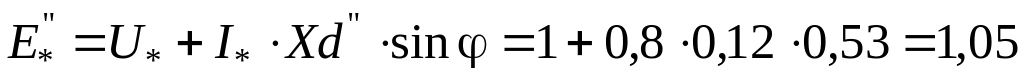 Примечание. Xd”, X’d, Xq”, X2, X0 – реактивности в относительных единицах.
