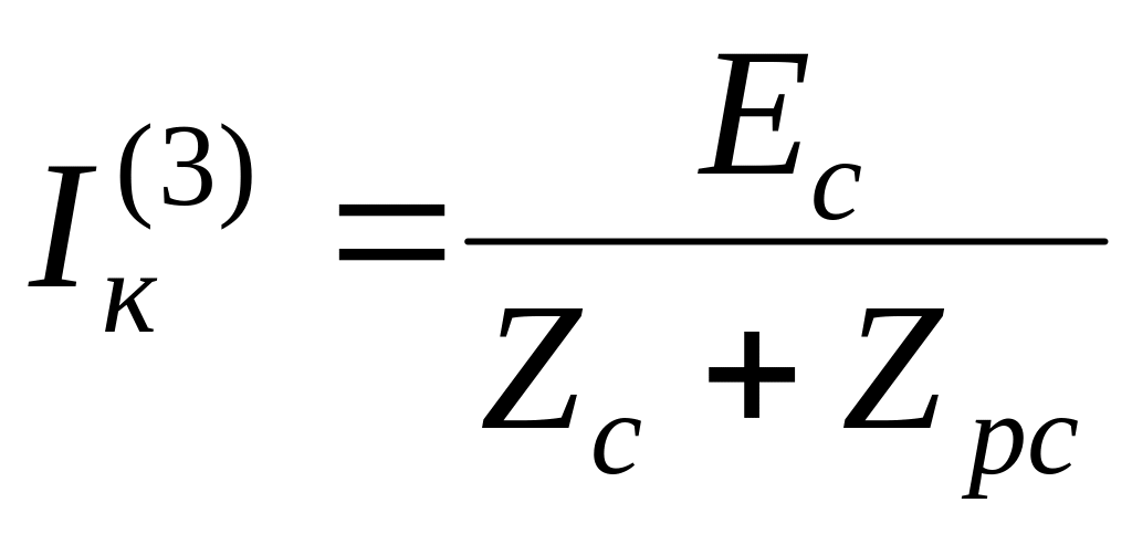 В ряде случаев сопротивление Zс по сравнению с Zрс настолько мало, что им можно пренебречь и принять Zс=0. Такой случай считается питанием от системы бесконечной мощности, и ток трехфазного КЗ определяется по выражению (16.2), в котором Zс=0.