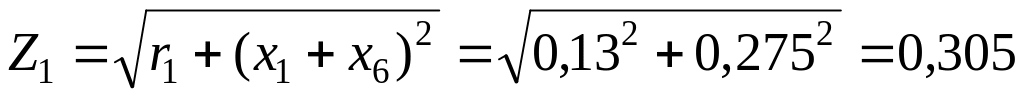 При КЗ в точке К1 примем сопротивление контактных соединений r=20 мОм. Следовательно, результирующие сопротивления схемы относительно точки К1 будут: