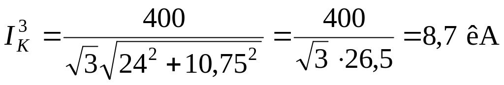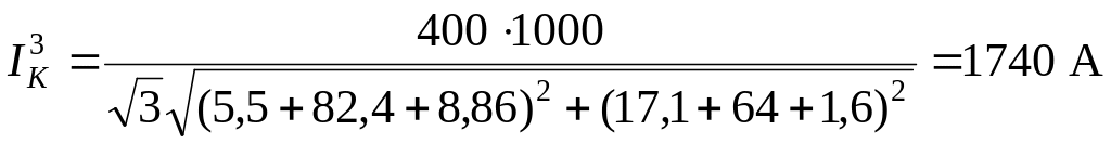 Если пренебречь сопротивлениями шин и аппаратуры, то ток КЗ будет равен: