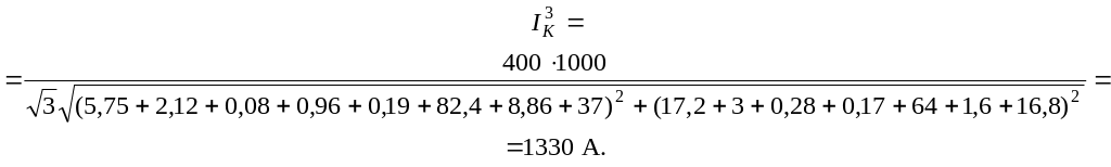 Без учета сопротивлений контактных соединений эти токи соответственно были бы: Iк3 = 20 кА и Iк1 =5,5 кА.