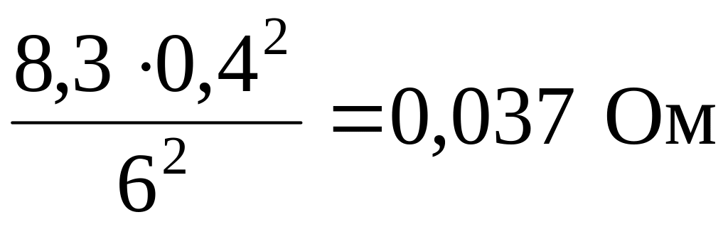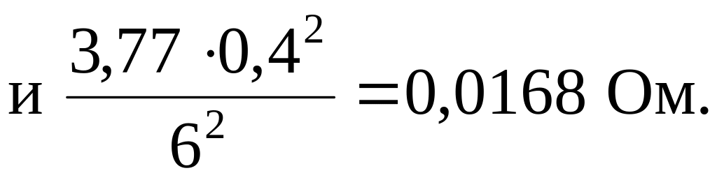 Так, если в данном примере трансформатор питается по линии 6 кВ длиной 10 км, выполненной проводом А-35 на опорах при Dср=1150 мм, то ее сопротивления будут: 8,3 Ом активное и 3,77 Ом индуктивное. Эти сопротивления, приведенные к напряжению 0,4 кВ, будут равны:
